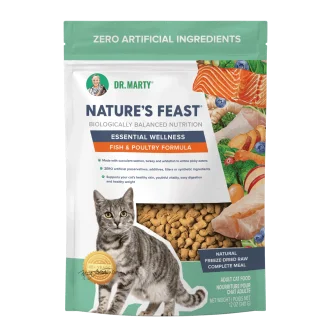 At first, this “carb addiction” could make your cat reluctant to dive in to the premium meat in Nature’s Feast. Use a fork to breakup the food before serving to release the meaty scent. This will rekindle your cat’s meat-loving instinct.