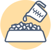 For moist food, many cats enjoy a mix of 1 part warm water to 2 parts food. But you can add as much or as little water as they like to fully customize the consistency. If they’re used to dry food, serve it completely dry!