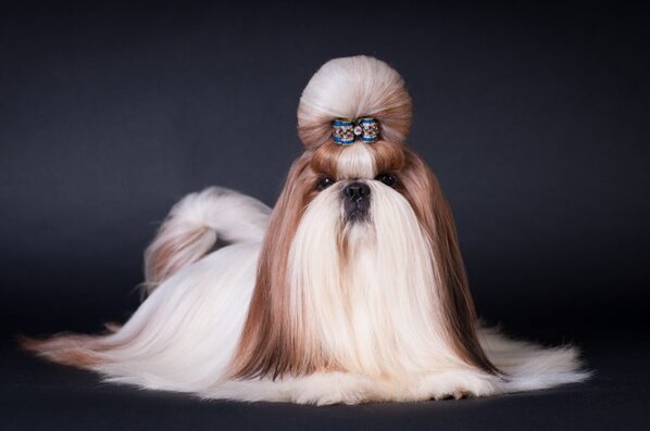 Shih Tzus are sometimes called chrysanthemum dogs because of the way their hair grows up from the nose and around the face in all directions, like a flower.15